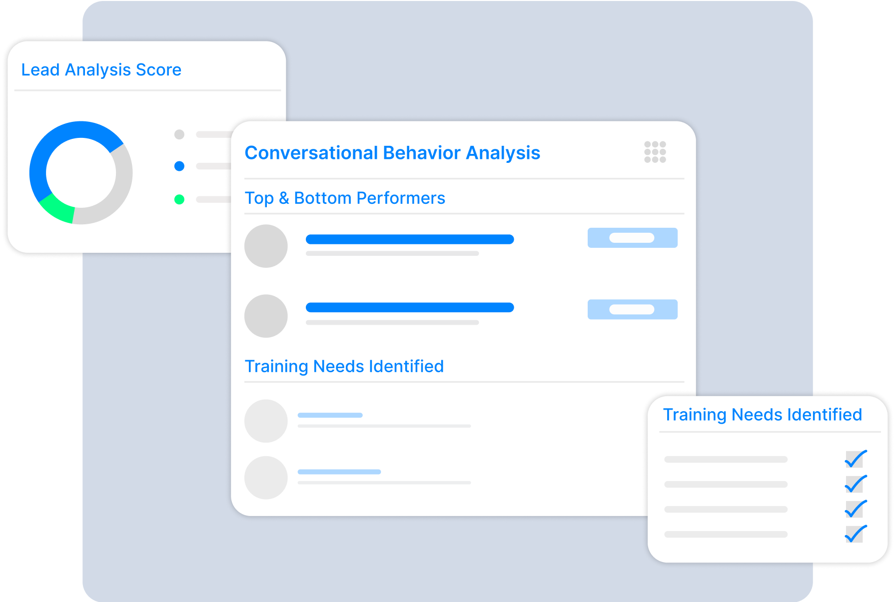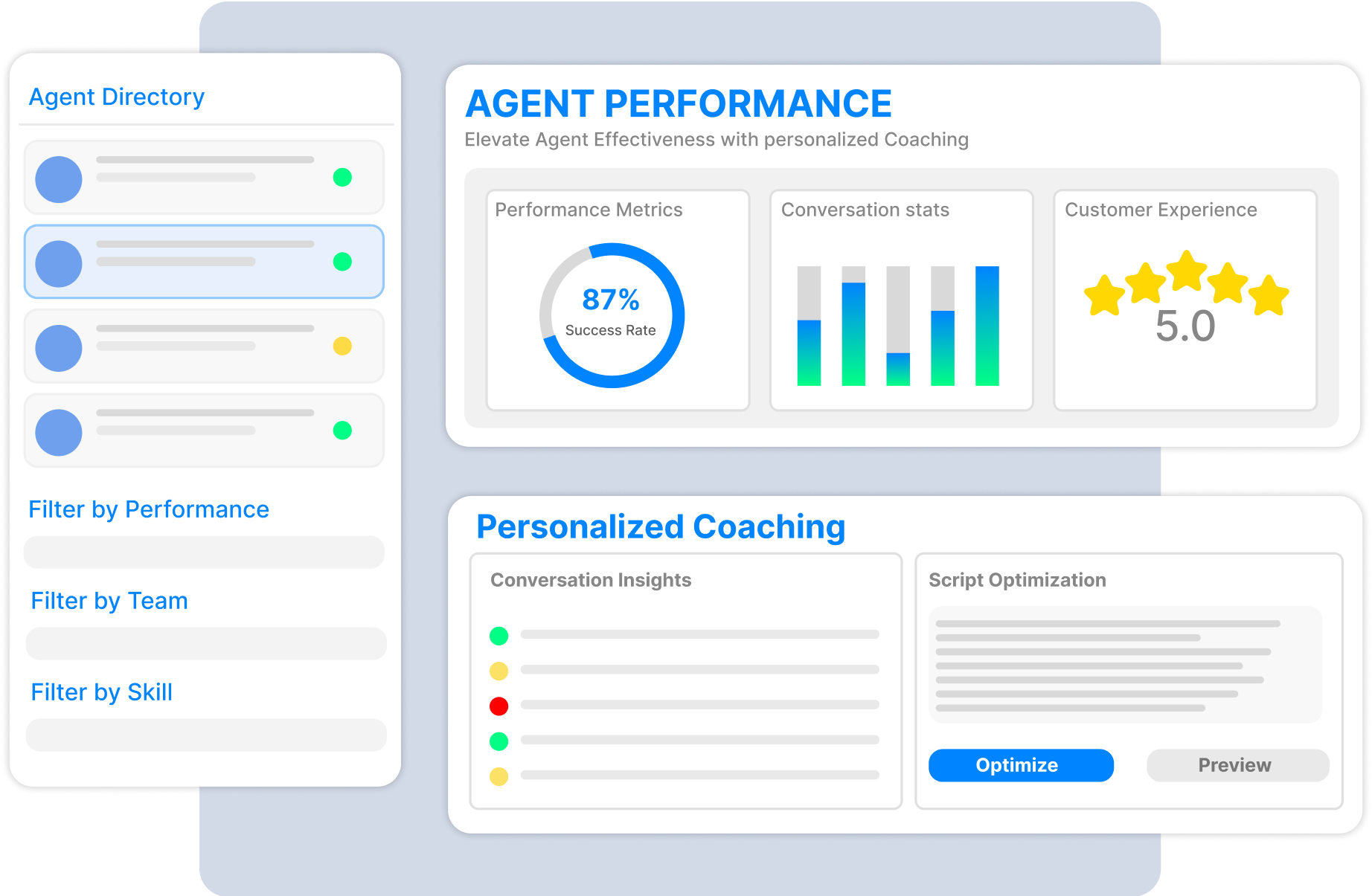 Train your agents with detailed insights from conversations. Improve pitch script and optimize their performance for enhanced sales, service, and customer experience.